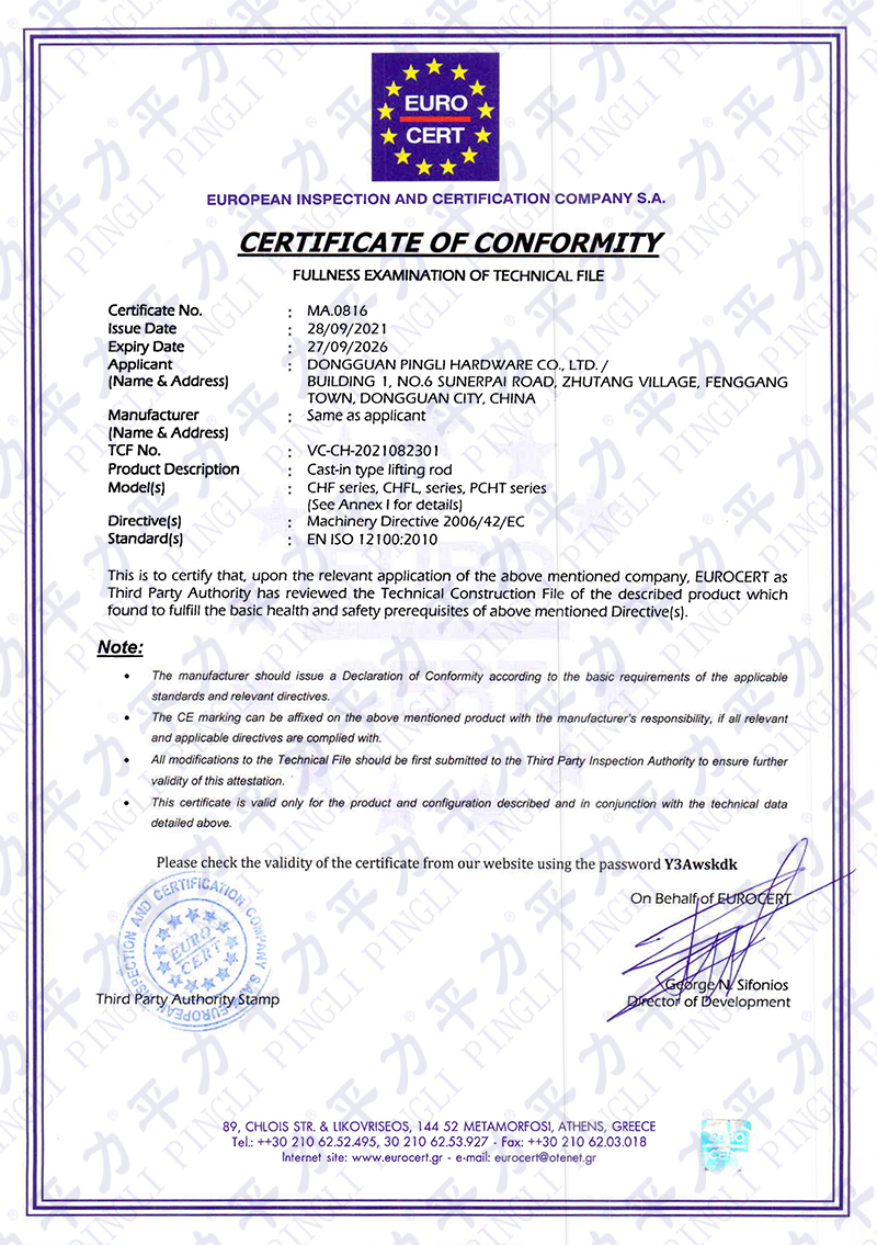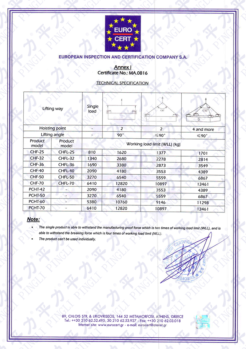 CHF-CHFL-PCHT產(chǎn)品CE證書