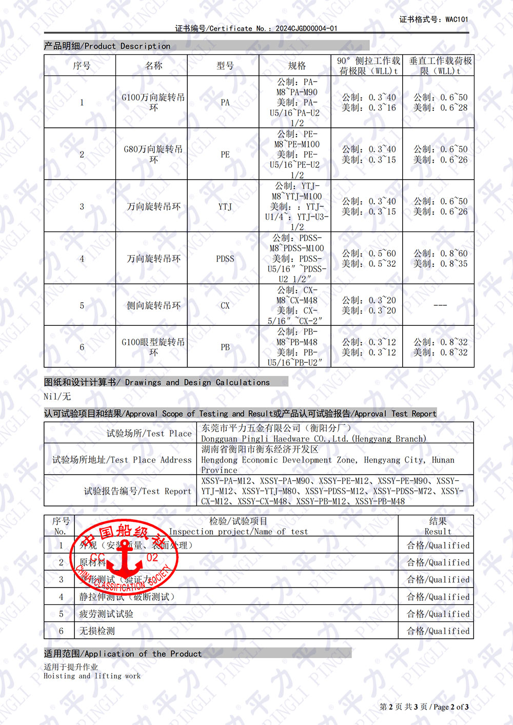 萬(wàn)向旋轉(zhuǎn)吊環(huán)-工廠認(rèn)可證書(shū)