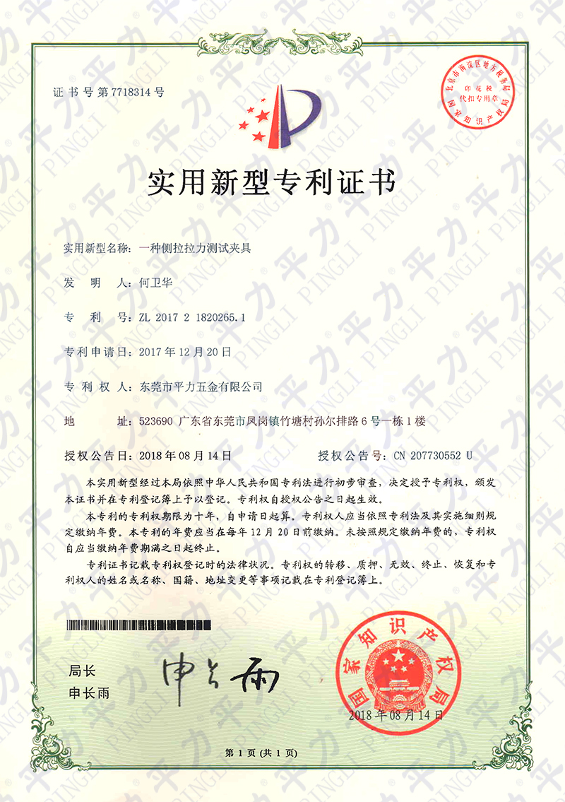 實用新型-側(cè)拉拉力測試夾具