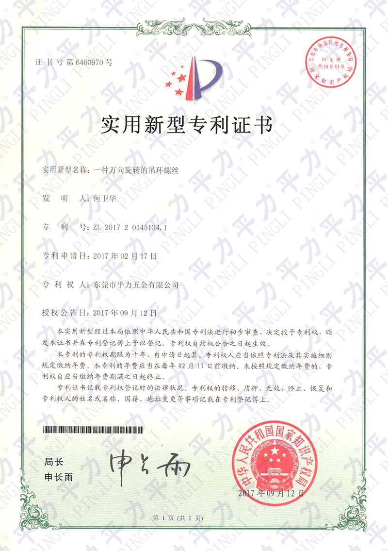 實用新型專利-萬向旋轉(zhuǎn)吊環(huán)螺絲