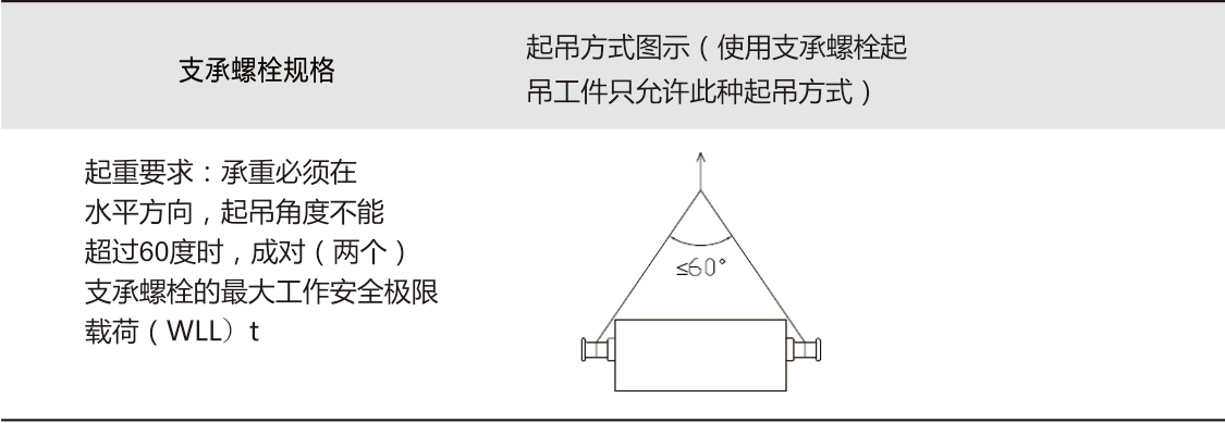 起吊工具:使用支承螺栓起吊工件時(shí),只允許使用標(biāo)準(zhǔn)吊帶、外面包了織物的標(biāo)準(zhǔn)鏈條等軟連接吊具進(jìn)行起吊,吊具上要盡量做到充分接觸,防止相對(duì)位移,不允許使用吊鉤及其它硬連接的吊具進(jìn)行起吊。