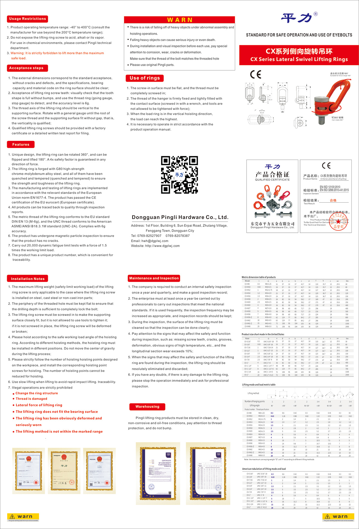● 吊環(huán)公制螺紋,符合歐盟規(guī)DIN EN 13標(biāo)準(zhǔn)(M-6g),UNC螺紋符合美國ASME/ANSI B18.3.1M標(biāo)準(zhǔn)(UNC-2A),螺紋100%經(jīng)過通止規(guī)檢測(cè),螺紋外徑公差符合6g精度。
