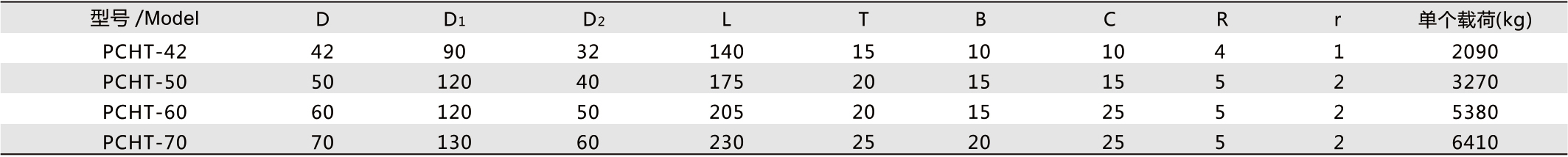 鑄入型吊鉤PCHT  產(chǎn)品規(guī)格及尺寸